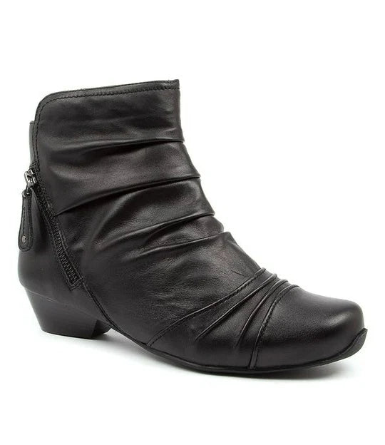 Designed with a sturdy low heel, stylish zip trim and convenient zip fastening, CAMRYN is a ruched ankle boot featuring the brand's XW fit which allows slightly more room over the forefoot and arch. A Super Support footbed deeply cradles the heel for a stable, natural fit.