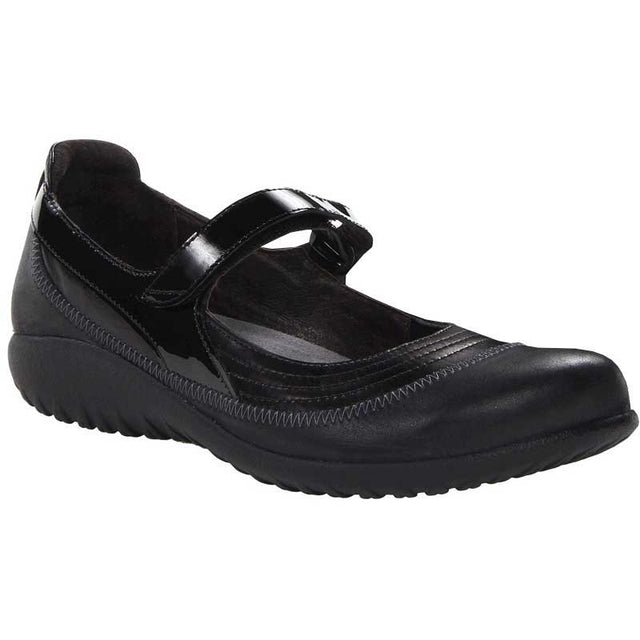 The Kirei is a vibrant, fashionable maryjane shoe. This style has a padded heel cup for stability & comfort and a hook & loop closure at the instep for adjustability. The front portion of the Kirei features padded technical lining which provides comfort and absorbs moisture. Naot's removable, anatomic cork & latex footbed is wrapped in pampering suede and molds to the shape of the foot with wear. The Koru Collection features a 1" polyurethane sole which is extremely lightweight, durable & slip resistant. This collection uses a hand-sewn Strobel construction making it strong and extremely flexible.