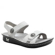 The Vienna sandal is an easy to wear two strap slingback sandal with perfectly matched delicate ornamentation on the straps. Designed with a variety of fun patterns and colors, this style is sure to complement your summer wardrobe. The Vienna features the Mini outsole constructed to mimic a natural rocking motion for improved pressure distribution across the bottom of the foot, and an ergonomically designed footbed that conforms the natural contour of the foot, working to relieve legs, hip and back from long standing hours.